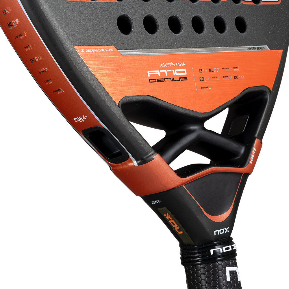 Following the guidance of the “Mozart of Catamarca”, NOX has incorporated an octagonal cap designed to enhance grip regardless of the handle type used. The EOS Flap has been retained to optimise racket handling and efficiently redistribute weight, resulting in a racket that is fast and lethal on the court.